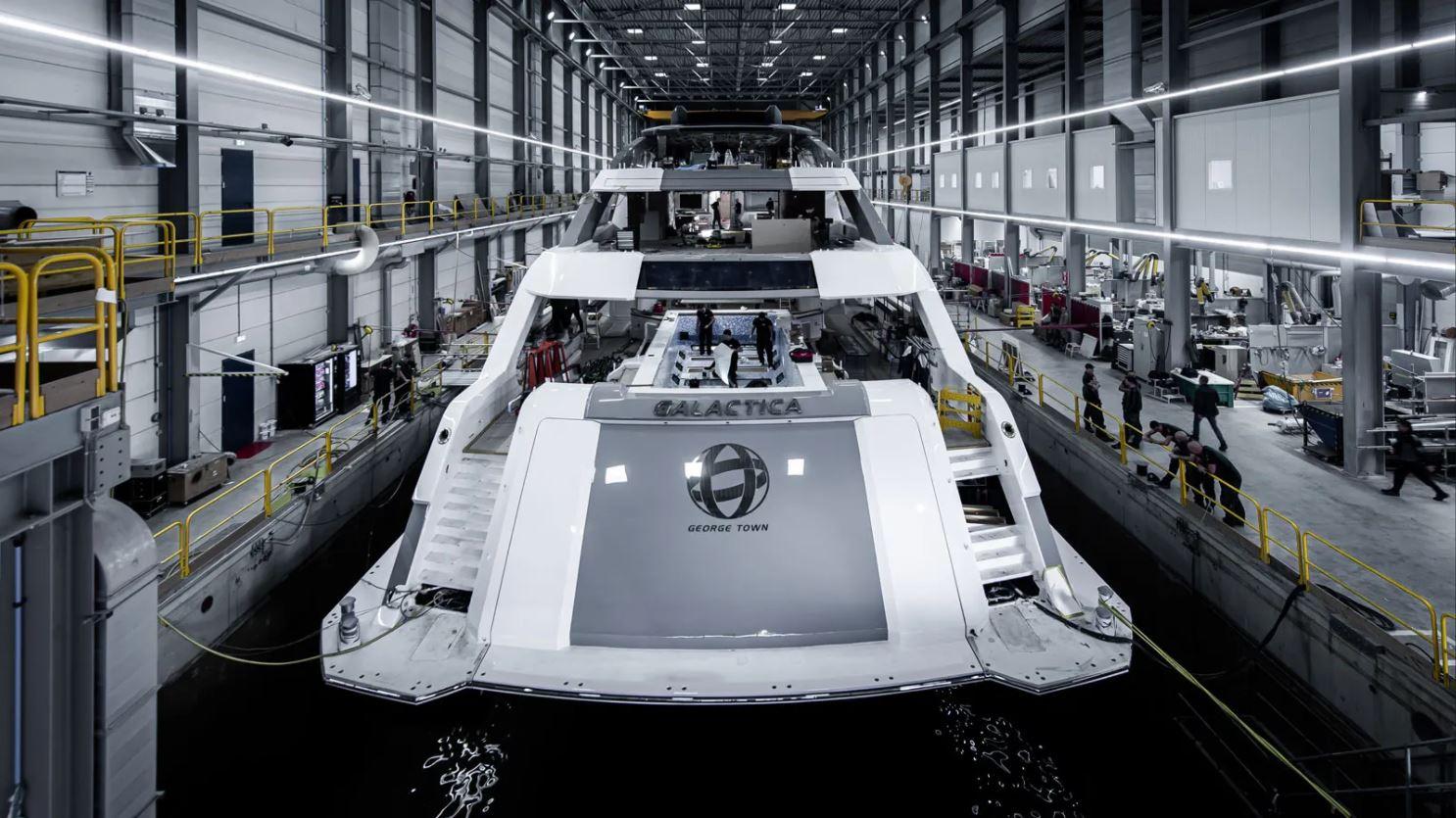 We are immensely proud and excited to share the news that Project Cosmos has been successfully launched at Heesen shipyard in Oss. At 80 metres in length, with a gross tonnage of 1,700GT and a top speed of almost 30 knots, she is the biggest and fastest all-aluminium yacht ever built. James Russell, Associate, Yacht Exteriors at Winch Design and Project Manager celebrated the launch stating “The brief stressed that she had to have a strong and unique signature whilst retaining the Heesen DNA that we all know and love. The emphasis was on creating a fast looking yacht that sits elegantly on the water, a feat that has been cleverly achieved through the use of sculptural, curved forms and perfectly balanced proportions.”