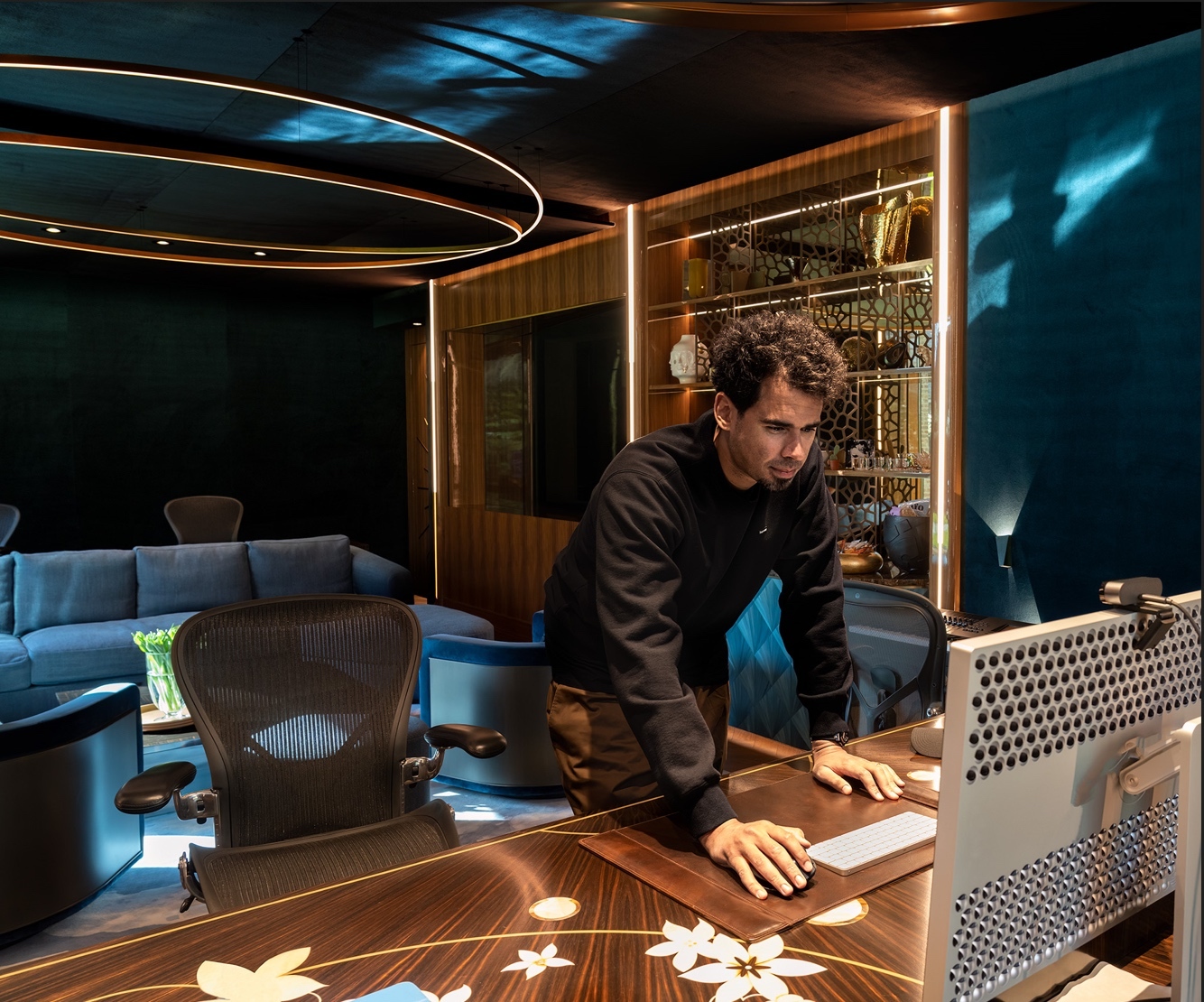 Taking inspiration from AFROJACK’s passion for superyachts, the team designed a secret midnight library with detailing inspired by the night sky and motifs reminiscent of the Art Deco period. The generous recording studio, living area and six bedrooms eliminate all logistical restrictions, and allow creativity to flow freely for artists.