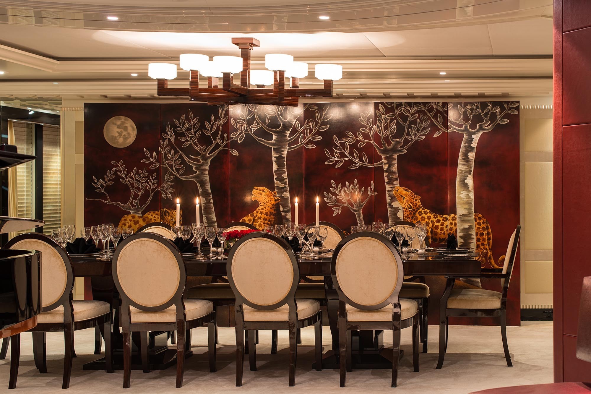 Delivered by renowned Dutch yard Ocenaco, Tranquility features Asian influenced interiors by Winch Design. Eastern styles, contrasting textures and materials such as wenge, bamboo, bleached oak and Travatino Veluto marble create a relaxed and welcoming environment.