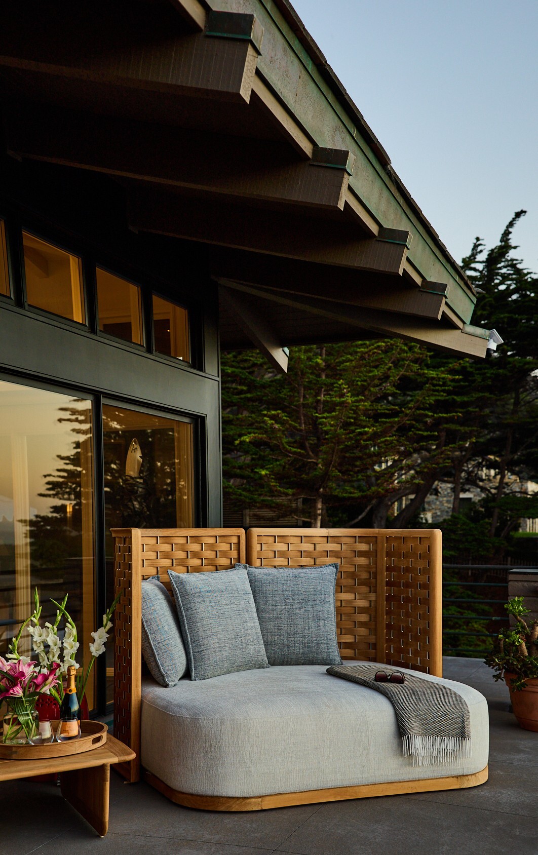 The daybed showcases the Arc Collection’s signature craftsmanship, with laminated teak intricately woven between brushed stainless‑steel rods - a direct reference to traditional yacht detailing and the ropework found aboard classic sailing vessels. Crafted from premium teak and finished with meticulous precision, the Arc Daybed offers generous space for lounging and is available in Summit’s full range of performance fabrics.