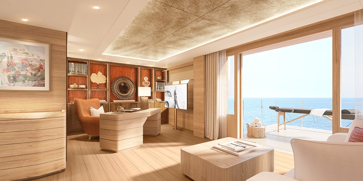 The interior design beautifully compliments the angular exterior; unifying facets and angles complemented by soft corners are mimicked in the interior architecture and furniture details throughout the yacht. She is scheduled for delivery in 2022.