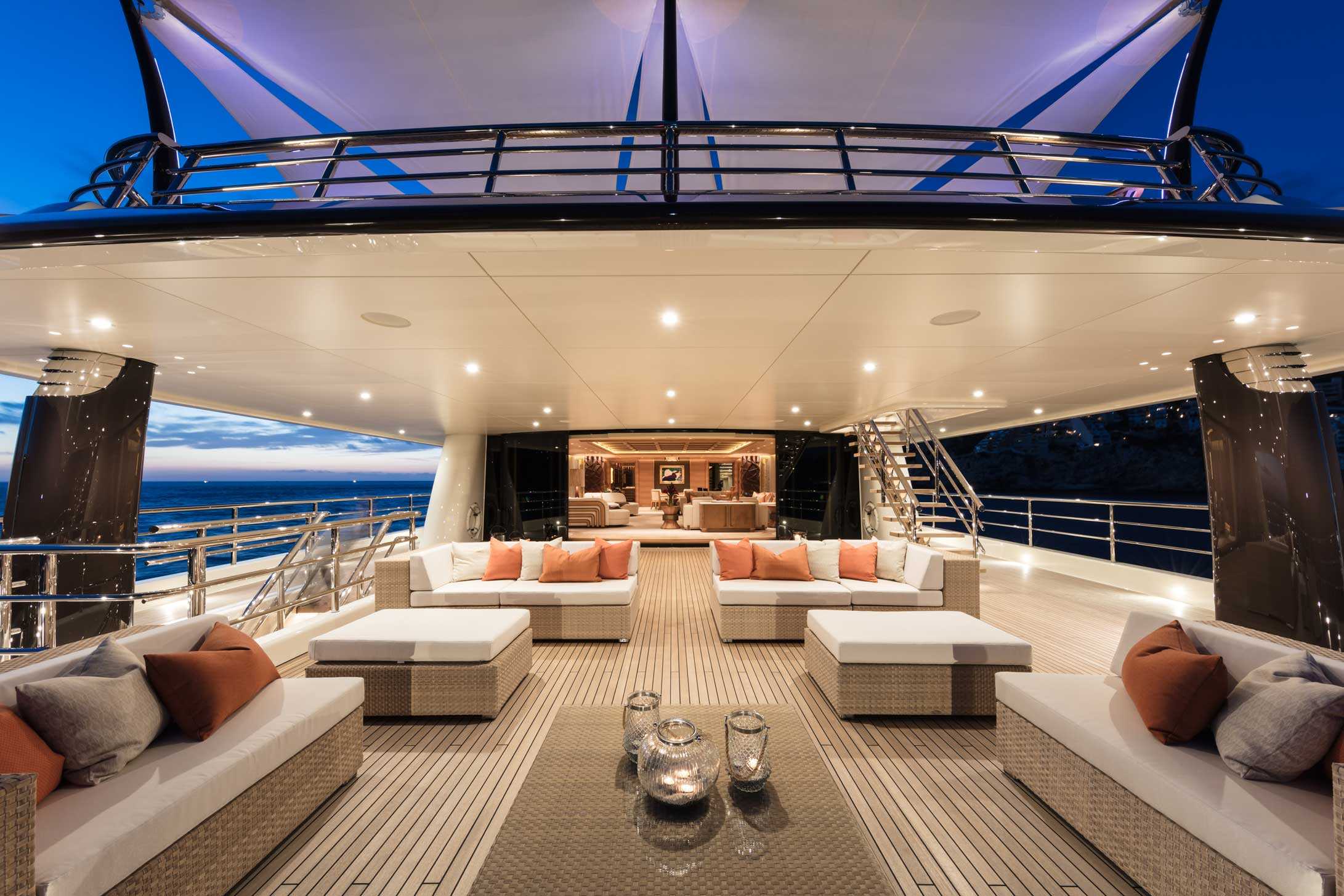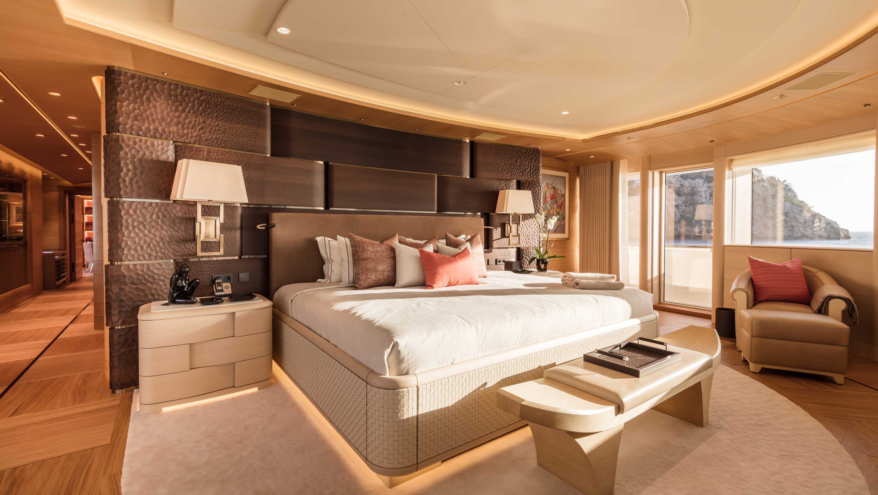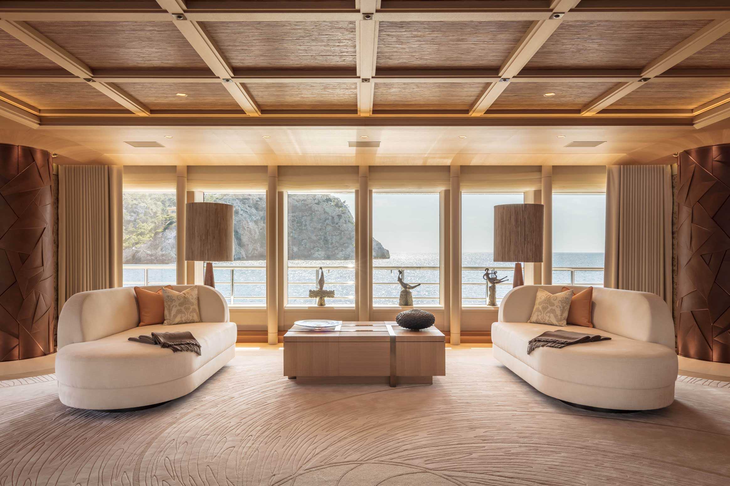 Here Comes the Sun is an Amels Limited Edition 272, the largest in the Limited Edition Range. Designed with family in mind, she features an owner’s private deck, open beach club and a greater number of guest cabins to accommodate large groups of families. Inside, the owner wanted a calm, beachy feel, using light materials and soft colours to provide a relaxing atmosphere.