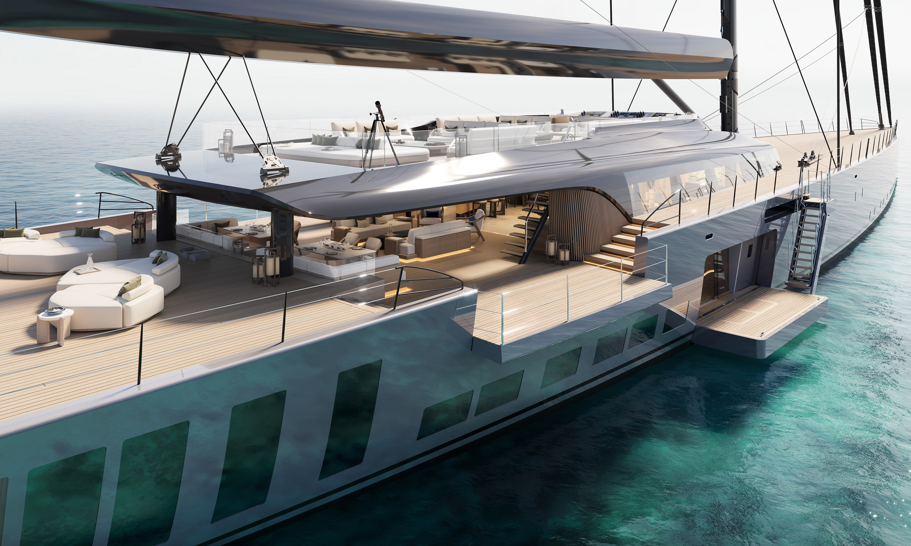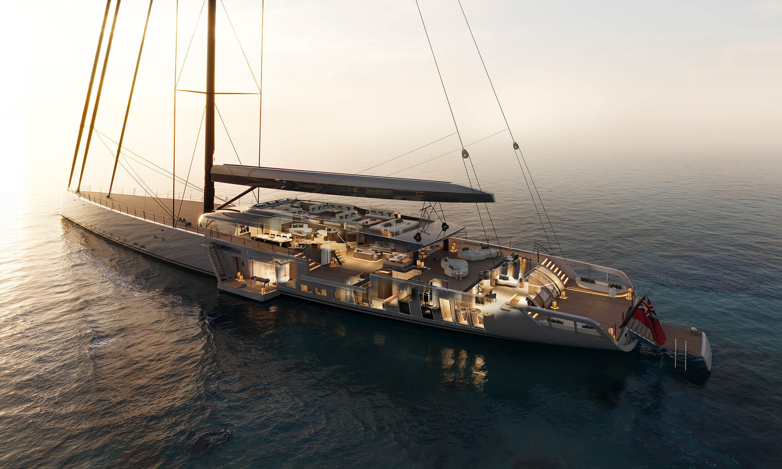 Project Sky is an 81m sloop sailing yacht set to feature the world’s tallest mast. The project brings together an exceptional collaboration: Winch Design for the elegant interior, Malcolm McKeon Yacht Design for the ambitious naval architecture and exterior styling, and Royal Huisman as the renowned shipyard entrusted with the build.
