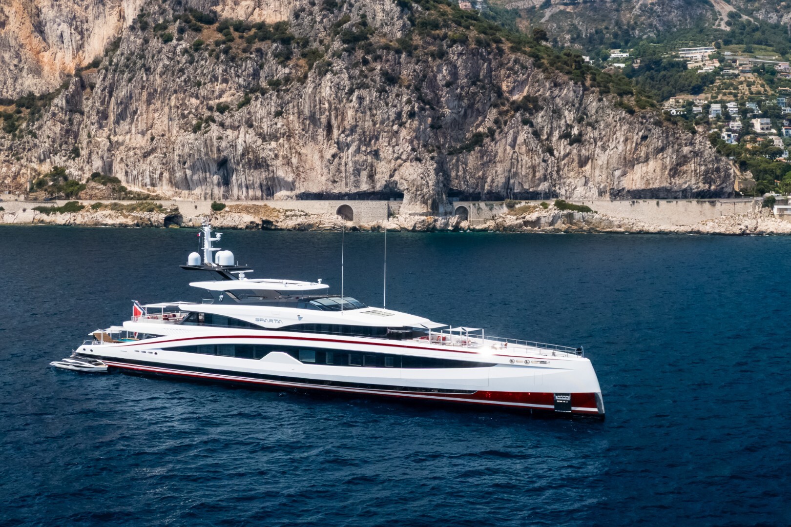 Sparta is the largest steel-hull displacement yacht ever built at Heesen and features both exterior and interior design by Winch Design. The elegant sheer line of Sparta connects a strong bow to an inviting transom, characterised by a stepped aft deck area with a five-metre infinity pool. Indoor and outdoor spaces connect harmoniously and create the perfect haven for family life and relaxation. By incorporating a raised pilothouse, Winch Design has conceived a new-look sporty profile and paved the way for the next generation of Heesen yachts.